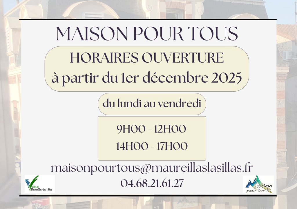 NOUVEAUX HORAIRES MAISON POUR TOUS