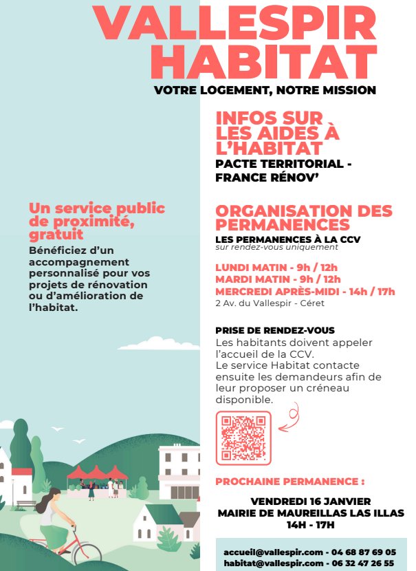 Dans le cadre de la mise en œuvre du Pacte Territorial, la Communauté de communes du Vallespir a créé un guichet unique d’information, de conseil et d’orientation dédié aux questions d’habitat.