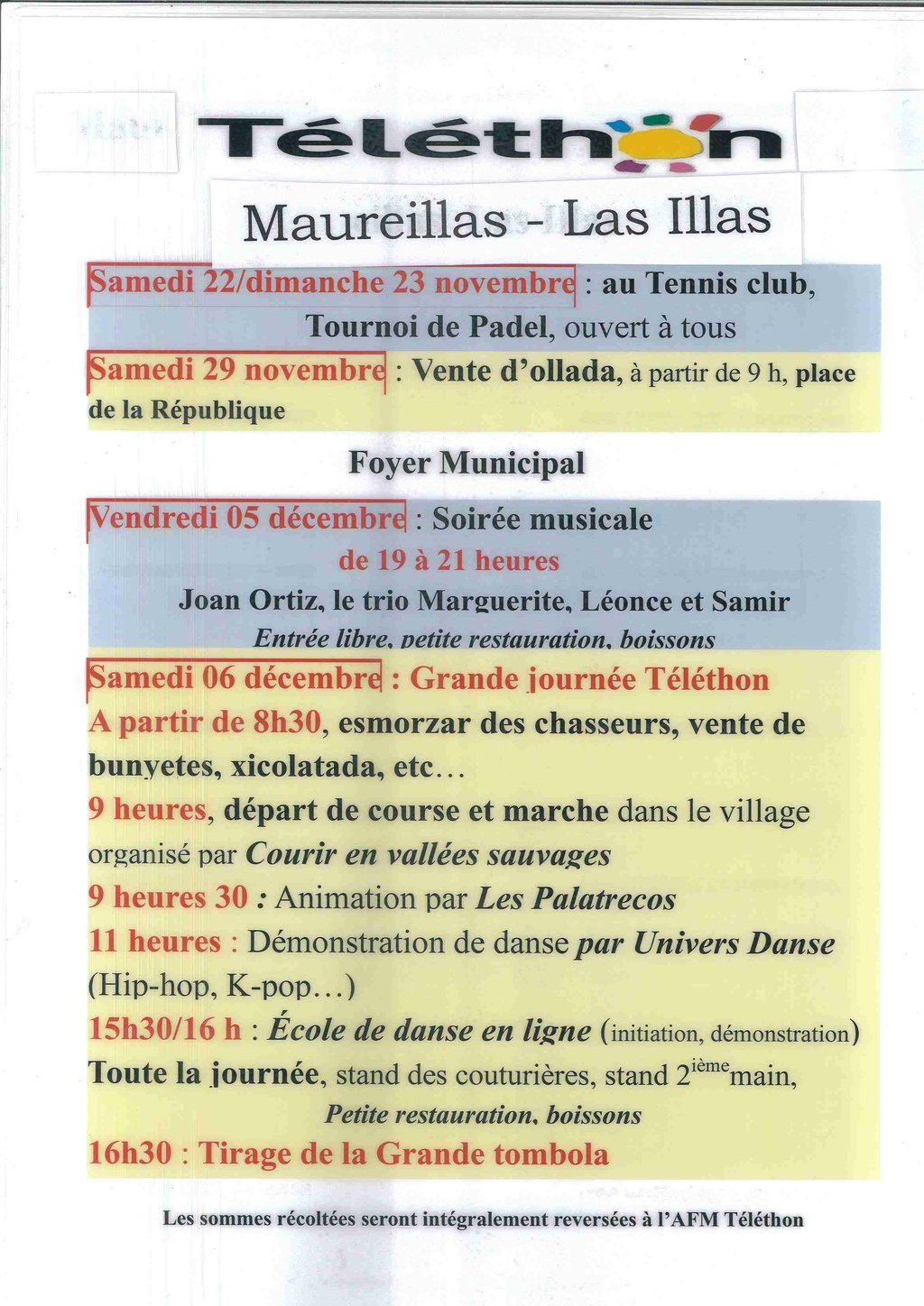 PROGRAMME TÉLÉTHON MAUREILLAS-LAS ILLAS