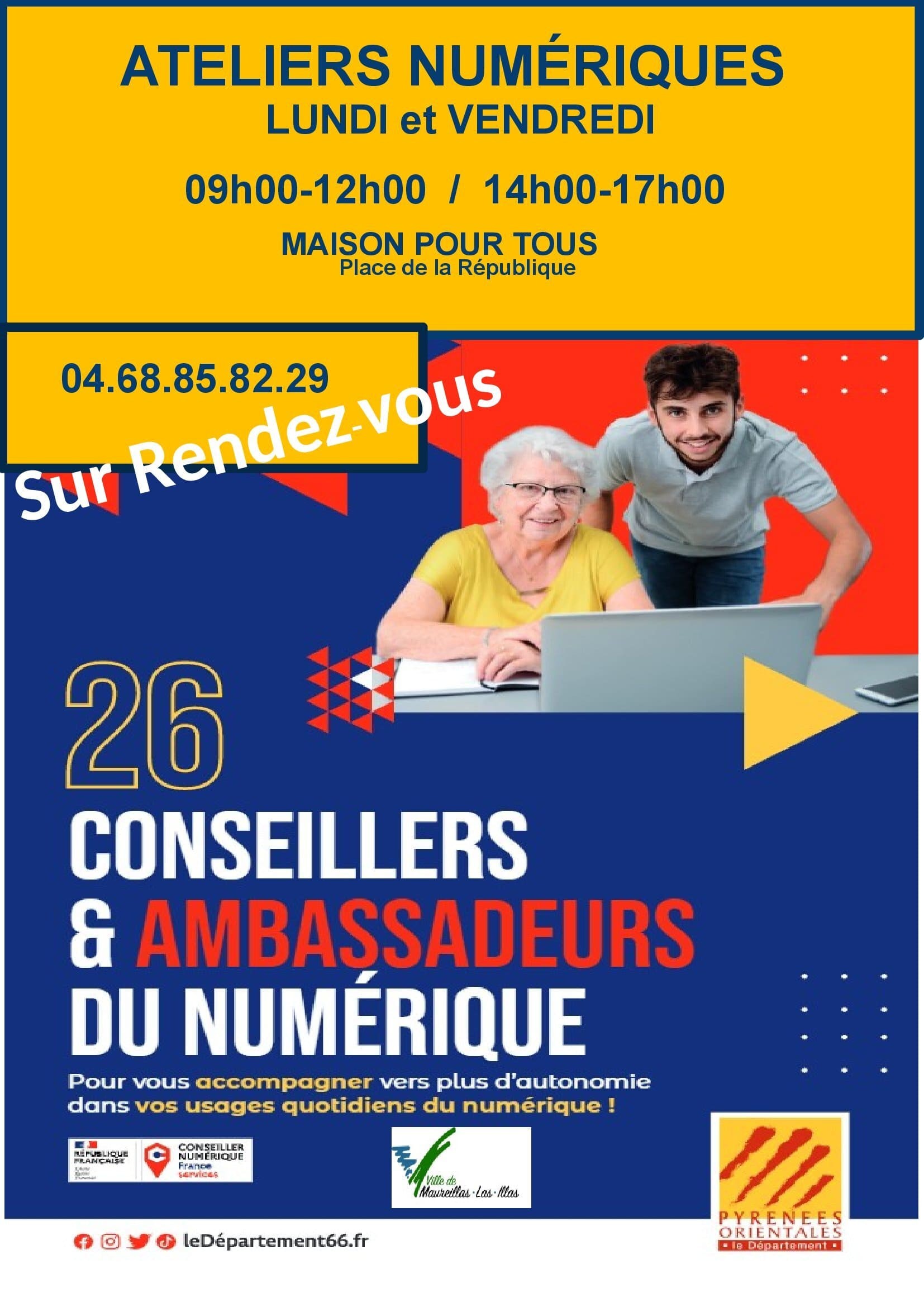 Retrouvez les conseillers du numérique tous les lundis et vendredis sur inscription pour vous accompagner dans vos démarches dématérialisées.